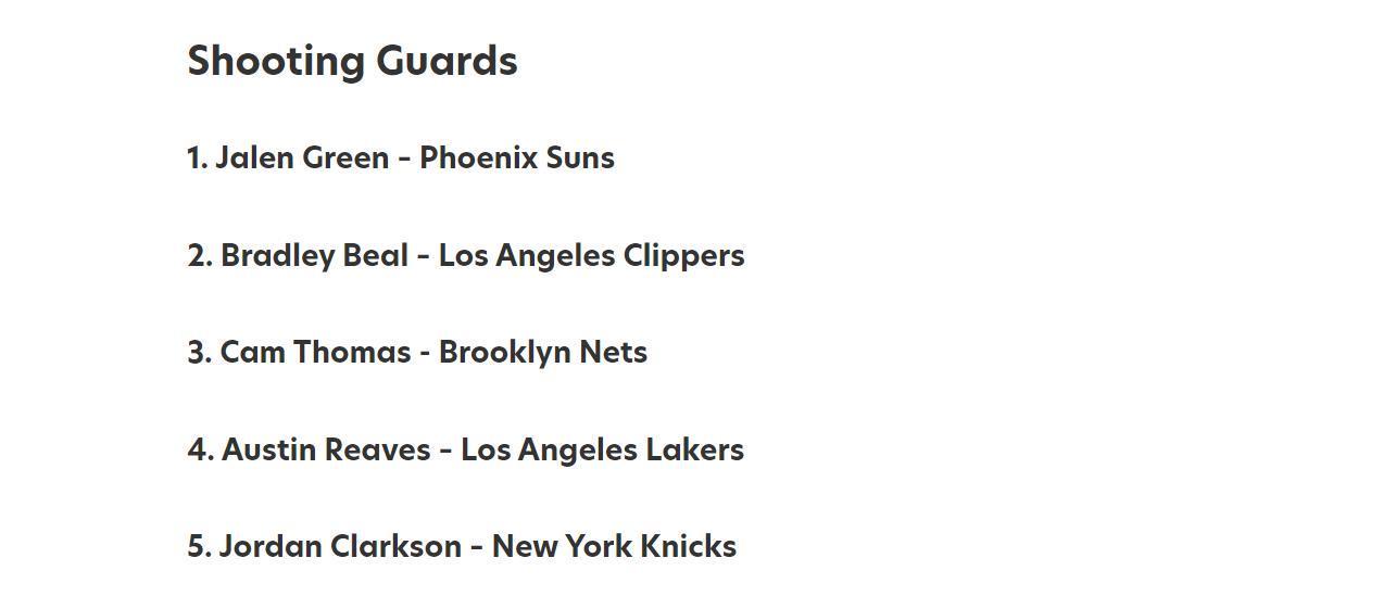 得分后卫:杰林格林、比尔、卡姆托马斯、里夫斯和克拉克森