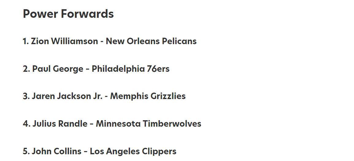 锡安拥有夸张的身体天赋,一度被视作NBA下一个美国本土培养出的门面人物,锡安也在登场时展现出无解的终结能力,无奈的是,他一直无法解决伤病问题,导致其成为最被高估的球员之一,乔治的状况类似。