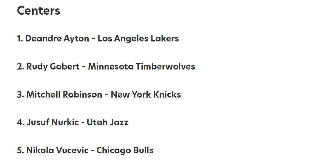 湖人队另外一名入选的球员是艾顿,并且获得了中锋最被高估的位置,这与其疲软的球风息息相关。